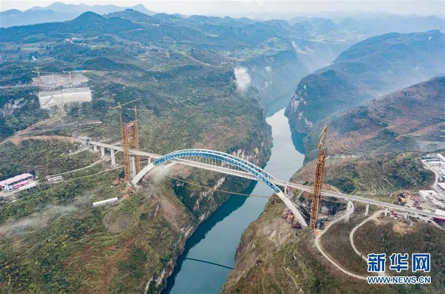 鸭池河特大桥位于贵州黔西县境内,横跨乌江天堑,全长971米、主跨436米,是世界上最大跨径中承式钢混结合提篮拱桥,结构形式新颖,跨度大、受力复杂,安全风险极大,为世界首例。
