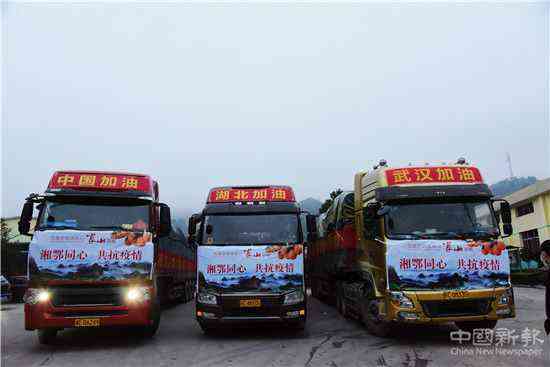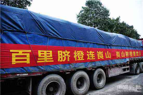 中国新报湖南讯(特约记者 杨坚 通讯员 肖品) 百里脐橙连崀山,崀山脐橙援武汉。2月13日清晨,三辆挂着“武汉加油!”等横幅的大卡车,满载新宁人民爱心的12万斤脐橙从崀山果业公司出发,驶向湖北武汉。