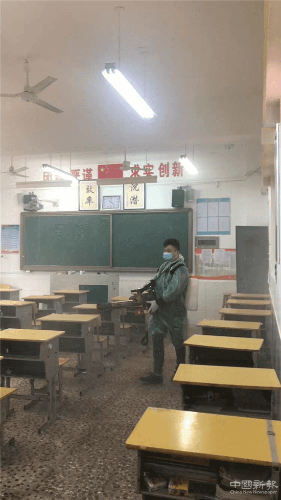 下午4点左右,长沙县一中326间宿舍及49间教室、长沙县职业中专的384间宿舍及60间教室在志愿者们的齐心协力下,校舍全部消杀完成,确保广大师生返校后迎来健康、卫生、安全的学习和生活环境。