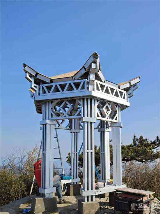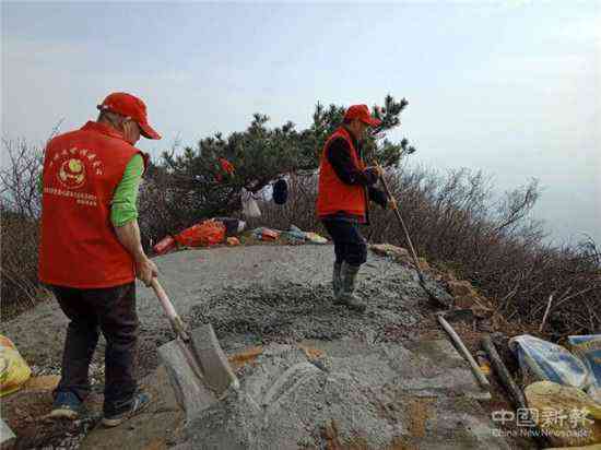 彭升爱心协会第一时间组织义工上山选址、搬运物资。因山高路险,车行不至,马运难达,很多材料都是义工们肩挑手提涉险运输。袁征命、袁国周等义工更是不辞劳苦,全程参与风雨亭的建设。杨远和董事长带领技术人员,每日骑行140多公里往返邵阳至十重大界,每个施工环节都亲力亲为。他们在山顶连续奋战十多天,风雨无阻,烈日不停。困了,就地小憩一会;饿了,吃点面包充饥;渴了,有时也只能捧点山泉水润嘴。“风雨亭一定要赶在旅游旺季到来前完工,要为游客提供一个休息的地方,再苦再累也值得!”杨总多次对义工们这样说。
