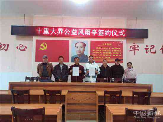 协会于2019年组织义工上山建好了首座公益简厕。2020年3月,协会联系到了湖南百变轻钢别墅建筑有限公司(以下简称百变公司),其董事长杨远和通过实地考察以及与协会领导沟通后,他非常认可彭升爱心协会的理念。为了让“后花园”更美,更为了方便游客,身为邵阳人的杨总愿为建设美好家园出一份力,他决定在十重大界上修建一座风雨亭,百变公司捐赠轻钢材料并提供技术指导与安装。3月26日,在彭升村支两委的支持和见证下,协会与百变公司成功签约。