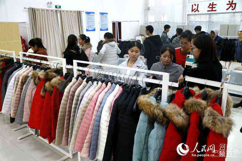 洛阳理工学院的学生在挑选棉袄 洛阳理工学院供图