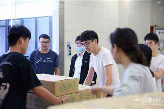 中国新报讯(特约记者 巢志斌 摄影报道)2020年9月26日,安徽迪王大健康科技有限公司合肥分公司的员工正在分发中秋、国庆“两节”福利黄梨,而这些黄梨是刚刚从安徽省合肥市庐江县冶父山镇幸福村扶贫基地三山果园采购来的。