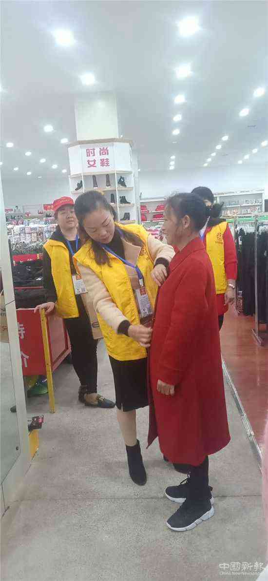 虽然天气变冷了,下着蒙蒙细雨,但是阻挡不住长沙县爱的摆渡人义工发展中心果园镇义工们火热的爱心,为了完成杨奶奶想帮孝顺儿媳买件新衣服的心愿,吴主任和黄新芝与爱心义工们一大早就带着杨清明大姐来到果园镇上选购她中意的衣服。来到超市,杨大姐一眼就看中了一件价值548元的毛呢大衣是为她量身打造的一样,长沙县爱的摆渡人义工发展中心理事黄新芝代表中心买下送给了杨清明大姐,鸿星尔克老板娘孙湘新和吴主任也给杨大姐送上了新鞋和新毛衣。