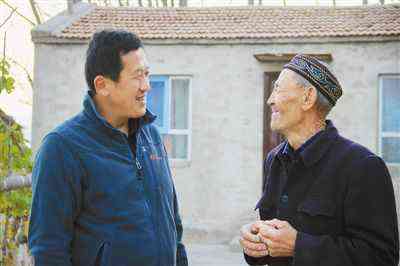 王志新(左)到村民家走访。