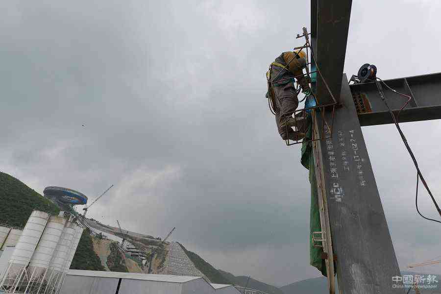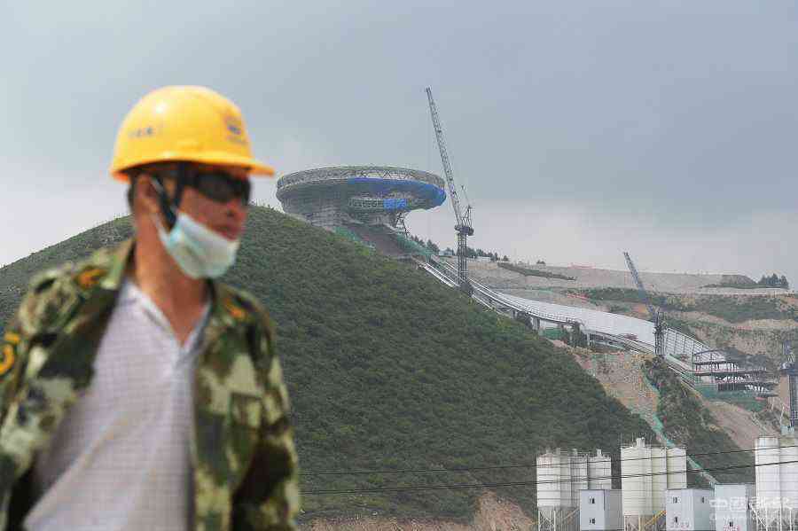 2020年7月30日,张家口崇礼,工人在国家跳台滑雪中心建设工地。(中国日报记者 魏晓昊 摄)