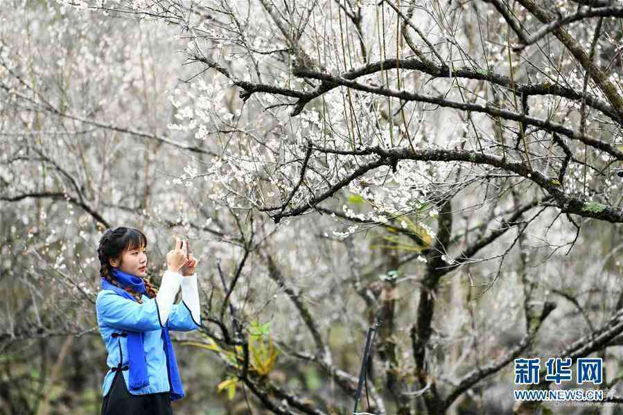 1月14日,游客在贵州省荔波县万亩梅原赏花观光。 当日,2020荔波第十五届梅花季在贵州省荔波县万亩梅原(因梅花连片生长,故当地称梅原)开幕。来自全国各地的众多游客齐聚荔波,共赏梅花。 新华社记者 杨文斌 摄
