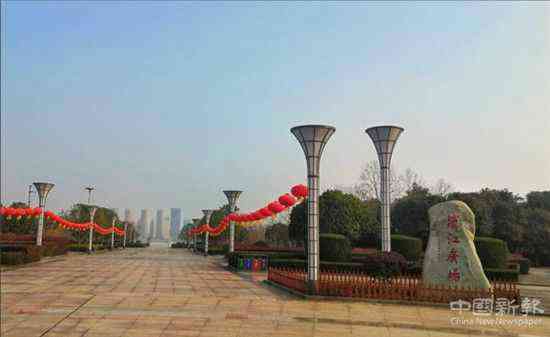 空空的江滩只有管理车辆放着防疫常识,提醒着偶尔路过的人戴上口罩,做好防护.