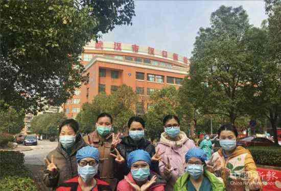 支援武汉汉口医院的广州中山二院的白衣天使们,下早班在医院门口合影留念.