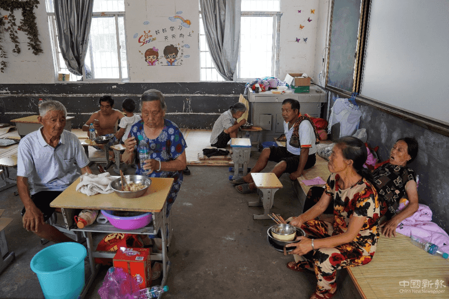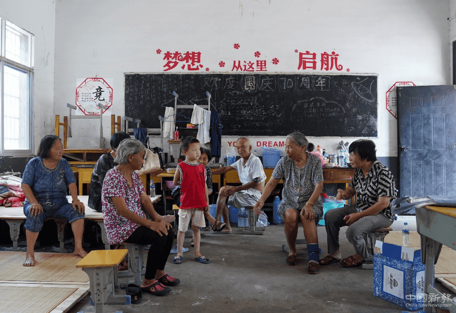 7月15日,受灾群众在江西鄱阳县家声小学安置点内休息。 中国日报记者 冯永斌 摄