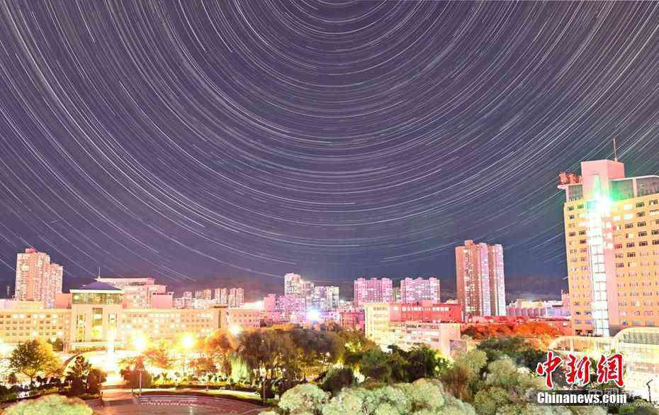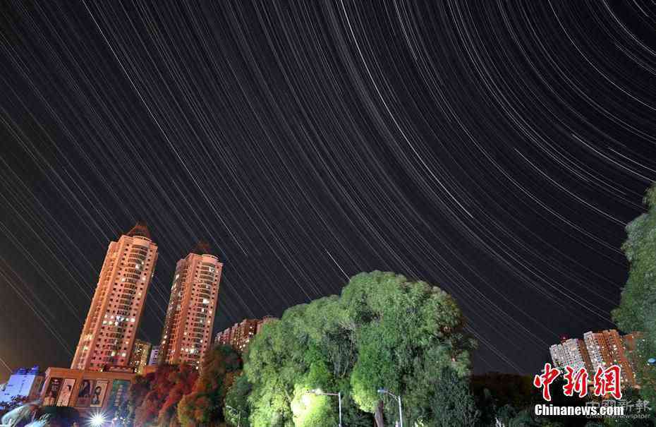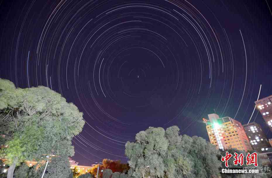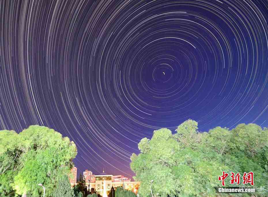 8月1日,星空下的新疆库尔勒市风光。盛夏时节,新疆库尔勒市连续多天出现晴好天气,在夜晚,浩瀚星空下显得格外神秘,树林、高楼、灯光、星空构成一幅幅美丽的画卷。 确·胡热 摄