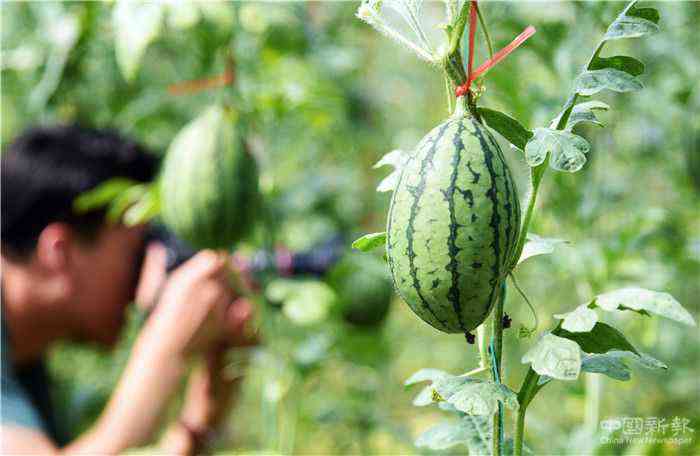 这是7月21日拍摄的潍坊市寒亭区国家现代农业产业园西瓜大棚内的西瓜。新华社记者 王凯 摄
