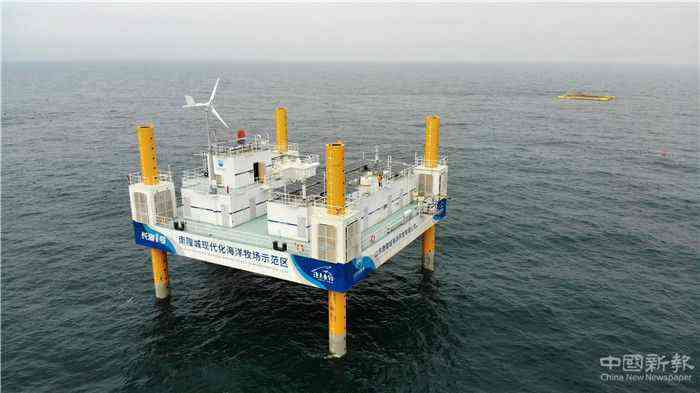 这是8月8日拍摄的应用5G技术的山东长岛综合试验区南隍城国家级海洋牧场示范区海上平台(无人机照片)。新华社记者 王凯 摄
