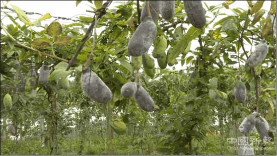 走进位于猴场镇那乡村的瓮安县文鸿特色农业有限公司八月瓜种植基地内,只见藤蔓缠绕在整齐的架子上,翠绿的枝叶和藤蔓交织在一起,目及之处都密密麻麻地挂着一个个青色的、紫色的果实,部分成熟的果实果皮会绽开,露出白色的果肉,散发着诱人的香味。虽然八月瓜才刚开始成熟,但已经吸引了不少水果批发商前来采购。