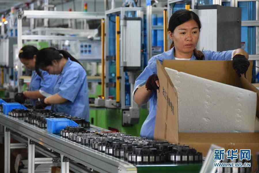 工人在位于浙江省湖州市南浔区的一家电机有限公司生产车间内作业(9月3日摄)。