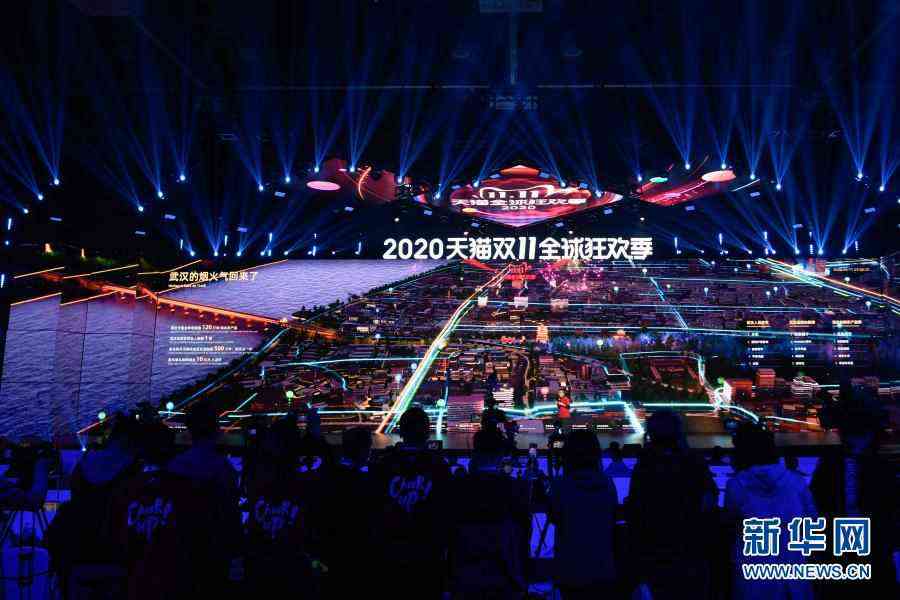 在浙江杭州未来科技城学术交流中心,大屏幕显示阿里巴巴旗下天猫“双11”期间湖北武汉的交易数据(11月11日摄)。