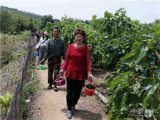 当地青年农民黄义勇、王卫勤夫妇从浙江农科院引进无籽大果、台湾长果、大白珍珠3个优良桑葚品种进行种植,面积20亩。在种植过程中,他们严格按照技术标准进行养护,全部采用人工除草,追求纯天然原生态的绿色食品品质。今年为第二年挂果,亩产鲜果可望获得500多公斤以上,亩收入超过1万元。(特约记者 巢志斌 通讯员 李杰 摄)
