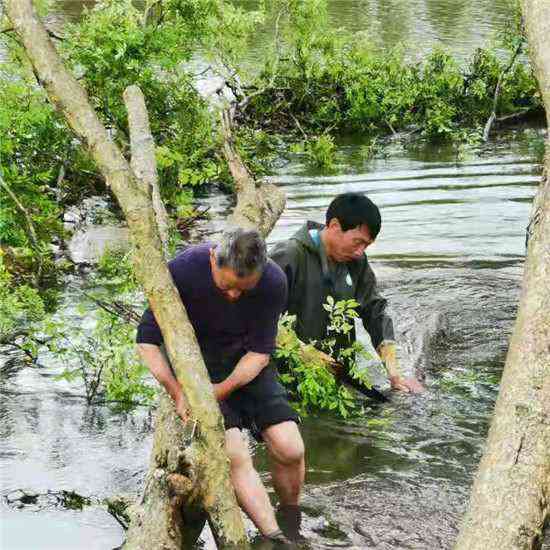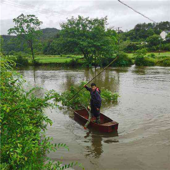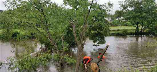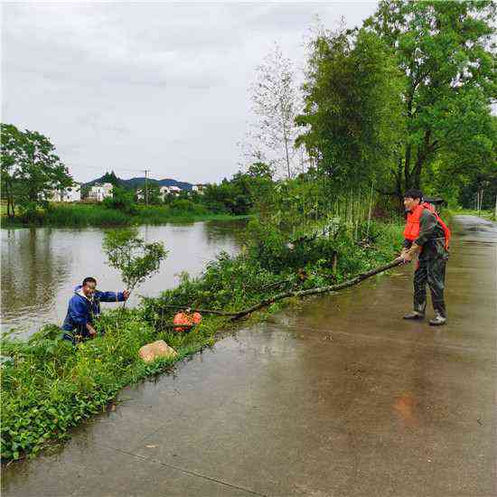 5月15日深夜,狂风暴雨把休宁县五城镇西田村境内颜公河边的两颗大树连根吹翻,大树连带着岸边泥土倾倒在河道中,阻碍了河道泄洪。第二日清早,该村党总支书记巴美好及时向当地镇政府报告险情,并组织了的8名懂得水性的党员和村民志愿者,穿着救生衣,带着刀、锯,撑着小船,冒雨奋战6个小时,终于把倒在河中的大树逐段打捞上岸,确保了汛期河道的畅通。(汪士奇 汪雪健)