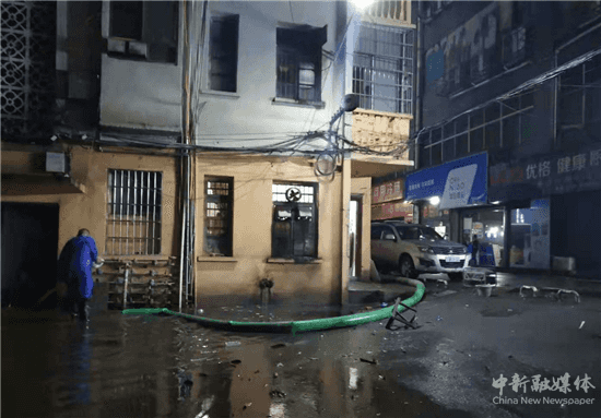 苗圃小学及衡安小区区域发生内涝,珠晖区住建局工作人员迅速展开抽水作业,排除内涝险情。