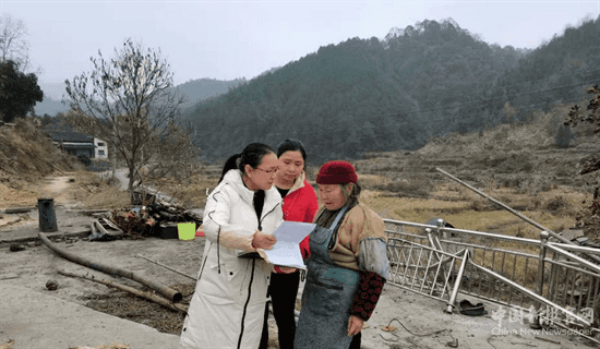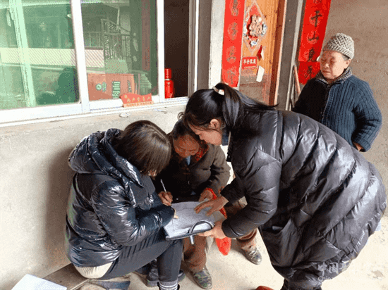 低收入家庭工作人员在麻塘乡莫锄村核算新申请低保户家庭收入情况。