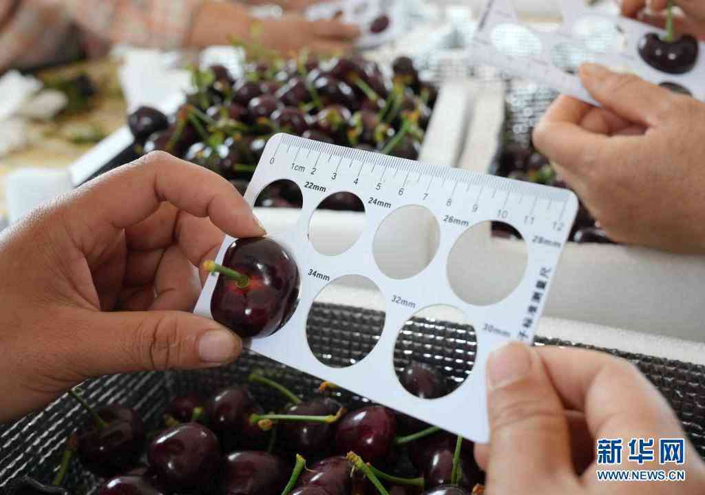 5月24日,在秦皇岛市海港区驻操营镇河北樱萃园农业科技有限公司樱桃基地,工人分拣刚采摘的樱桃。新华社记者 杨世尧 摄