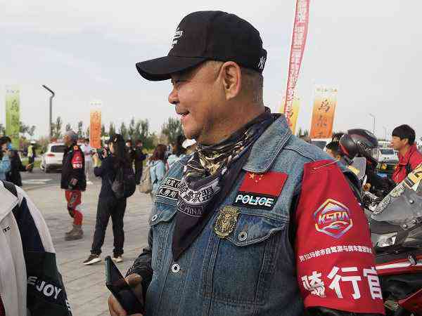 55岁的朱勇刚是新疆乌鲁木齐人,自从19年买了摩托车之后,他就爱上了这项刺激的运动,刚买5个月就开车跑了5万公里。与在场的其他骑手相比,常年风吹日晒,他的皮肤比其他人更黑一些,但也更令人踏实。对于整个骑行队伍来说,他是很多人心中的“好大哥”。“大家都喜欢和我在一块玩,”朱勇刚说,“在摩旅的过程中(我)交了好多朋友。”
