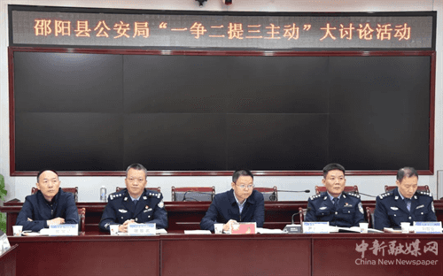 为提高公安民警的为民服务意识 转变工作作风,10月20日,湖南省邵阳县公安局组织开展“一争二提三主动”大讨论活动,县委常委、政法委书记曾林出席活动,县人民政府党组成员、公安局长尹向锋主持活动。局党委全体成员、局属各单位主要负责人(含交警、森林公安)及局机关部分民警代表参加活动。