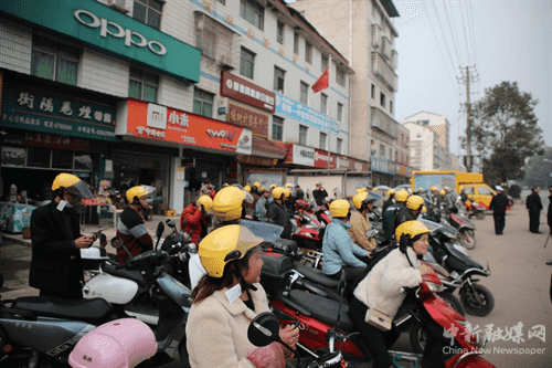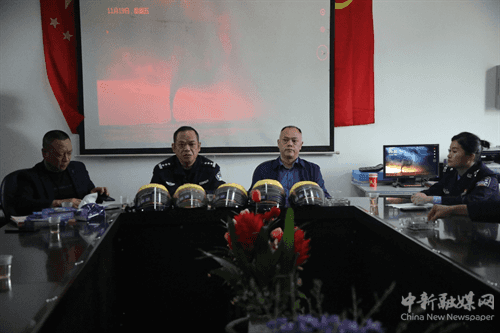 “一盔一带,安全常在!”11月19日上午,衡阳县樟树乡樟树村村民委员会外,整齐划一的黄色头盔犹如一盏盏小黄灯,提示着过往车辆与群众——“缓一缓,等一等,宁停三分,不抢一秒”。樟树村村民们的这股昂扬气势,让见惯大场面的交警们都禁不住竖起了大拇指。