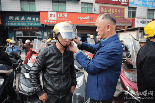 活动结束后,村民有序领取了安全头盔。在发放头盔的同时,民警还为村民手把手讲解如何正确佩戴头盔。佩戴着崭新的头盔,村民们喜气洋洋地骑上各自的电动车、摩托车,由衷地喊出:“一盔一带,安全常在!”本次活动共发放交通安全宣传资料200余份,发放头盔100余顶,起到了良好的宣传效果。(凌零 莫亚丹 朱晓勇)