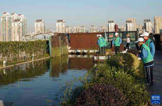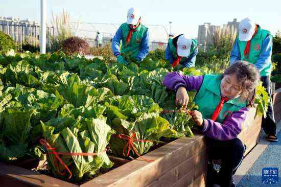 11月24日,进华中学学生在“屋顶生态园”劳动。