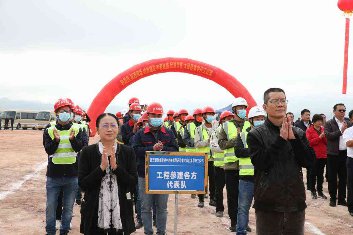 12月5日,工程参建各方代表队参加西双版纳建设中老铁路经济带重大项目集中开工仪式。(中国日报记者 武晓慧 摄)