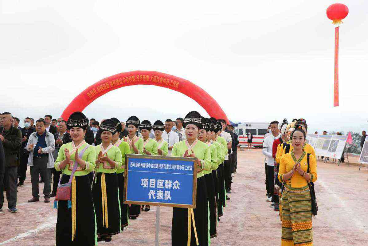 12月5日,项目区群众代表队参加西双版纳建设中老铁路经济带重大项目集中开工仪式。(中国日报记者 武晓慧 摄)