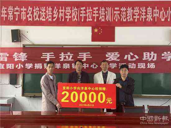 为响应关于“全面践行社会主义核心价值观”的号召,推动学雷锋志愿服务活动常态化。4月21日,常宁市宜阳小学来到洋泉镇中心小学开展“学雷锋 手拉手 ”爱心助学行动暨“一课三人行”、“同课异构”教学示范帮扶活动。