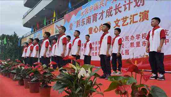 活动在师生们齐唱《没有共产党就没有新中国》的歌声中拉开序幕。之后,隆重的升国旗仪式,凯里市育才实验学校和凯文中学师生庆祝中国共产党建党100周年暨“六一”儿童节文艺汇演等“节目”陆续上演,表达了两校的师生对党的拥护与热爱之情。
