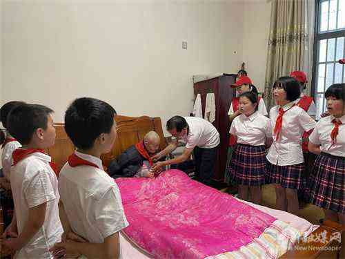 现年96岁的胡再根是流口镇唯一一个新中国成立前入党的老党员,已有72年党龄。他始终把“守初心、报党恩”当作毕生的理想信念,并为党的事业和流口地区的社会发展贡献了青春和力量。他对大家的探望表示感谢,亲切地与志愿者握手,教导年轻人要听党话,感党恩,跟党走,珍惜现在的美好生活,努力奋斗,积极进取,为国家和人民服务。活动最后,志愿者为胡爷爷戴上了红领巾,并为他献唱了一首歌曲《国家》,祝福老人身体健康。