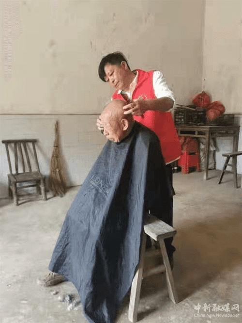 湖南好人王承志现场为老人义务理发