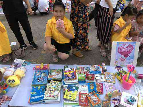 活动开始前,工作人员首先给大家现场播放了交通安全知识与防溺水知识宣传片。随后,宝贝练摊活动正式开始,孩子们各自找到自己的摊位,认真的拿出珍爱的玩具,文具,书籍等各类物件开始有序的摆放在摊位上,等待着“顾客”来将它们带走。“玉米两块钱一个……”,“图书五块钱三本……”他们热情的吆喝着,认真的介绍着自己的商品,仿佛每一个孩子们都身怀绝技,有的自带叫卖神器,忘我般的努力叫卖,他们从最开始的胆怯、害羞、不自信到后来慢慢放松,一点点尝试的纠结过程,从只敢站在摊位内小声吆喝到后面可以大方的拿着商品走到广场的每一个地方,或者叫住过往的行人进行推销,人群中看见的都是孩子们积极叫卖的身影。