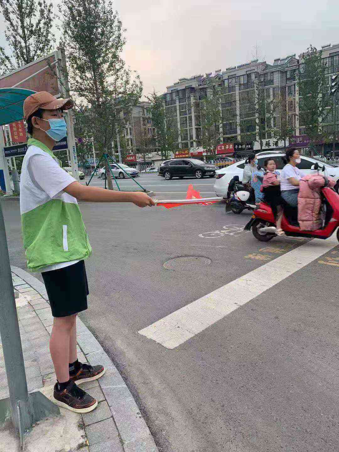 热爱公益而且经常做公益活动的他,于是主动联系顺风车志愿者协会的负责人,由于王梓诚同学经常参加公益活动,公益协会负责人对这个小家伙印象深刻,安排他在下班晚高峰协助交警疏导交通。于是,王梓诚同学放下游戏机,拿起引导旗,开始他人生中最有意义的活动(城市交通疏导志愿者)不论风雨、烈日,王梓诚都会在下午5:20坚持准时到达指定路口,(徐州邳州市解放路与中山路交叉口)签到打卡,换上马甲、拿起“文明交通”的出行引导旗,协助交通警察对行人、车辆进行文明出行引导,小小年纪就经常汗流浃背,时常口干舌燥,有时阴雨连绵,他都会坚持到晚高峰结束才下班,他的坚持与高度负责的工作态度,获得了交警叔叔和协会会员的一致好评。