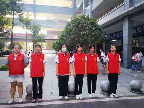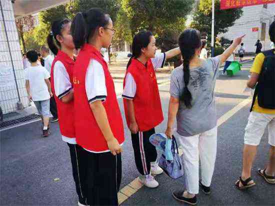 金秋九月,丹桂飘香,又是一年开学季。9月2日上午,邵东市城区三中12名八年级学生志愿者在校团总支的精心组织下,身穿红马夹,分别在学校前后门、操场等站点,迎接2021级七年级新生的到来。