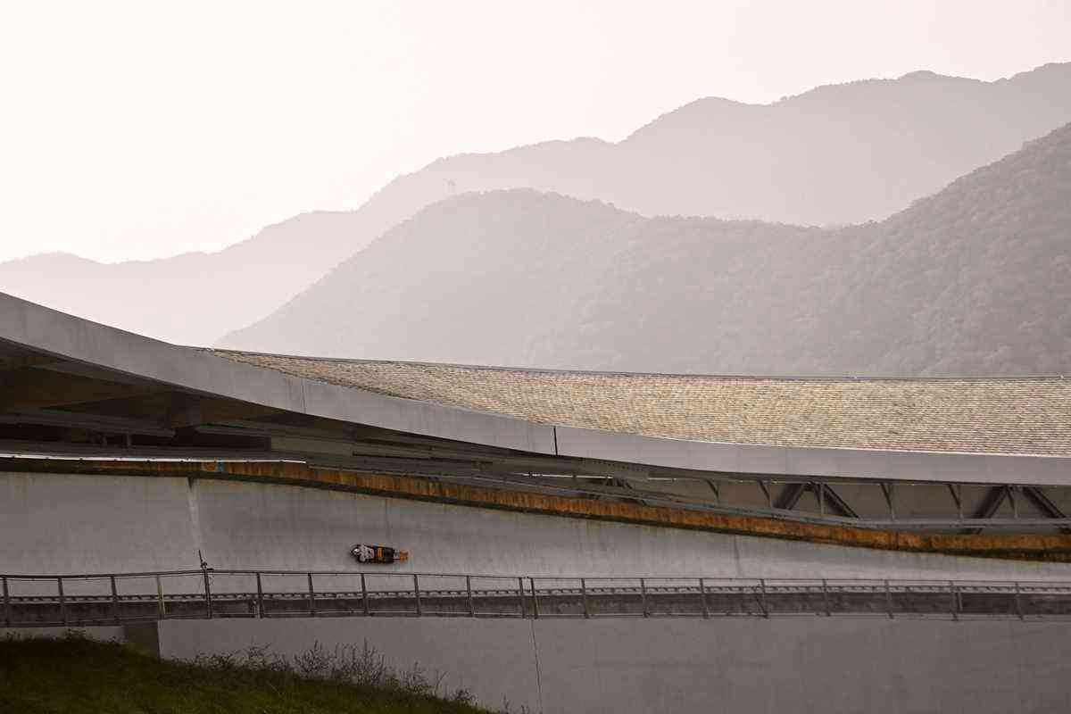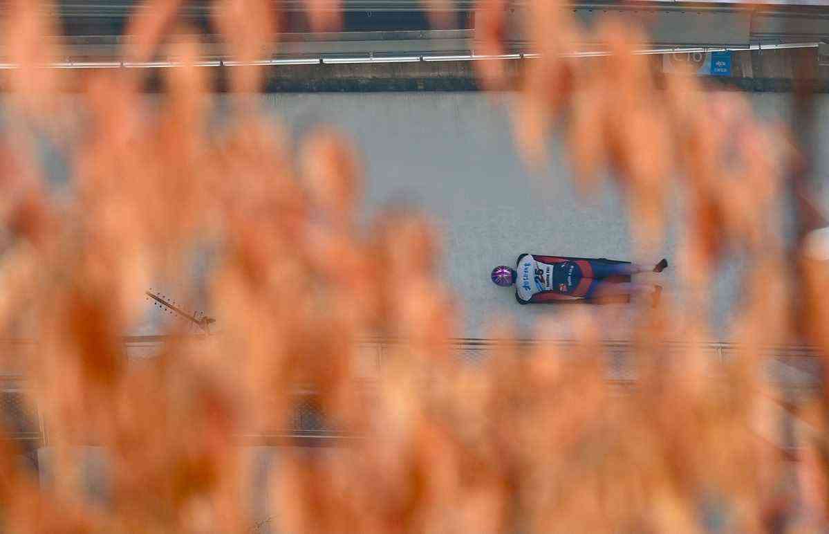 10月25日,运动员在“相约北京”雪车计时赛比赛中。(中国日报记者 魏晓昊 摄)