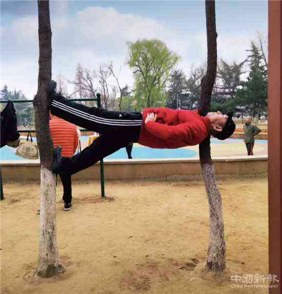 中国新报河北讯(记者 郑平)河北保定市七旬老人刘斗,经常活跃在保定市竞秀公园和人民广场展示健身绝活。他自己创作的单、双杠上和地上的健身方式,让人非常佩服。他说,退休的时候身体有不少的病,自打健身后身子骨一天比一天硬朗,心情也好了!