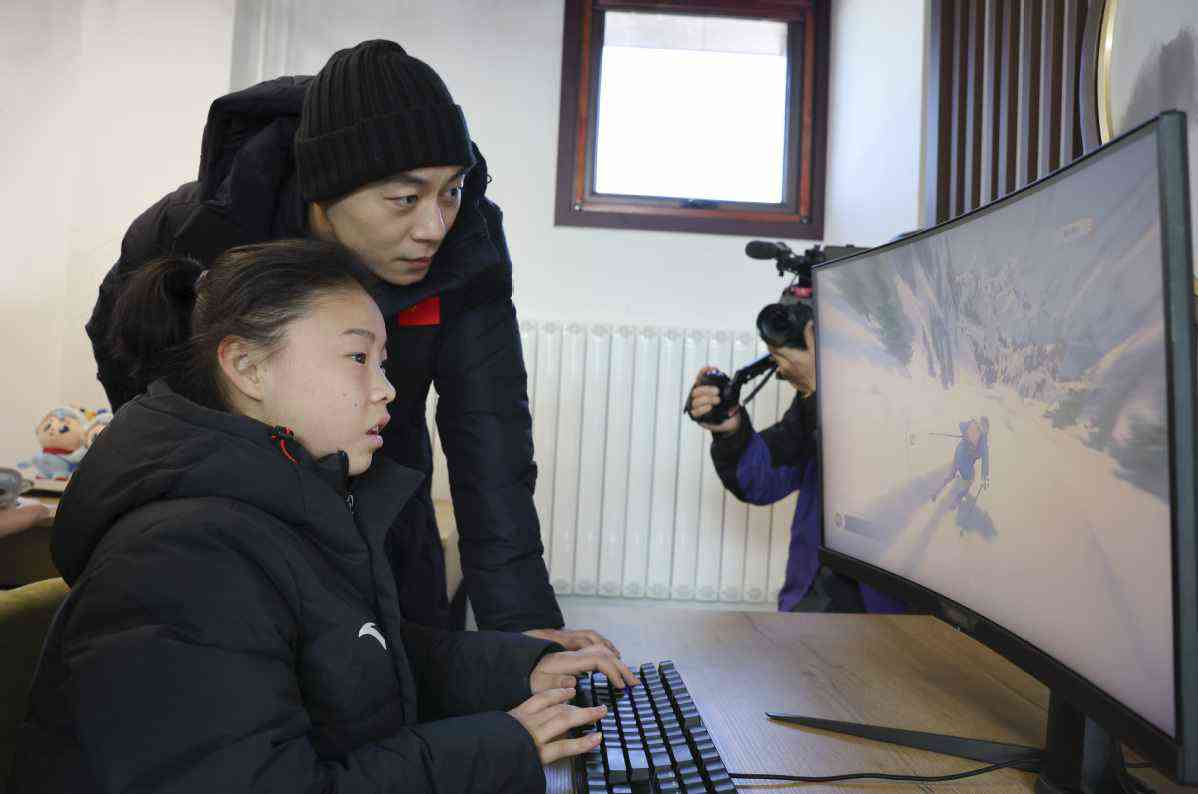 演员朱亚文观摩东京奥运会平衡木冠军管晨辰体验滑雪竞技游戏 (摄影:冯永斌)