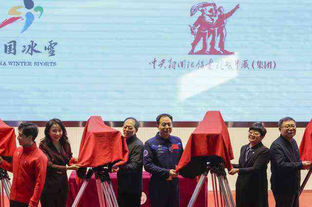 来自体育界、文娱界、航空航天和医疗卫生领域的优秀代表齐聚石景山冬奥社区,为北京冬奥会和“三亿人参与冰雪运动”助力 (摄影:冯永斌)