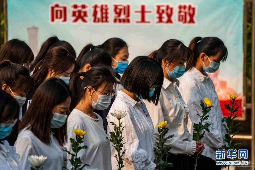 4月1日,云南师范大学师生代表在烈士墓前默哀。新华社记者 江文耀 摄