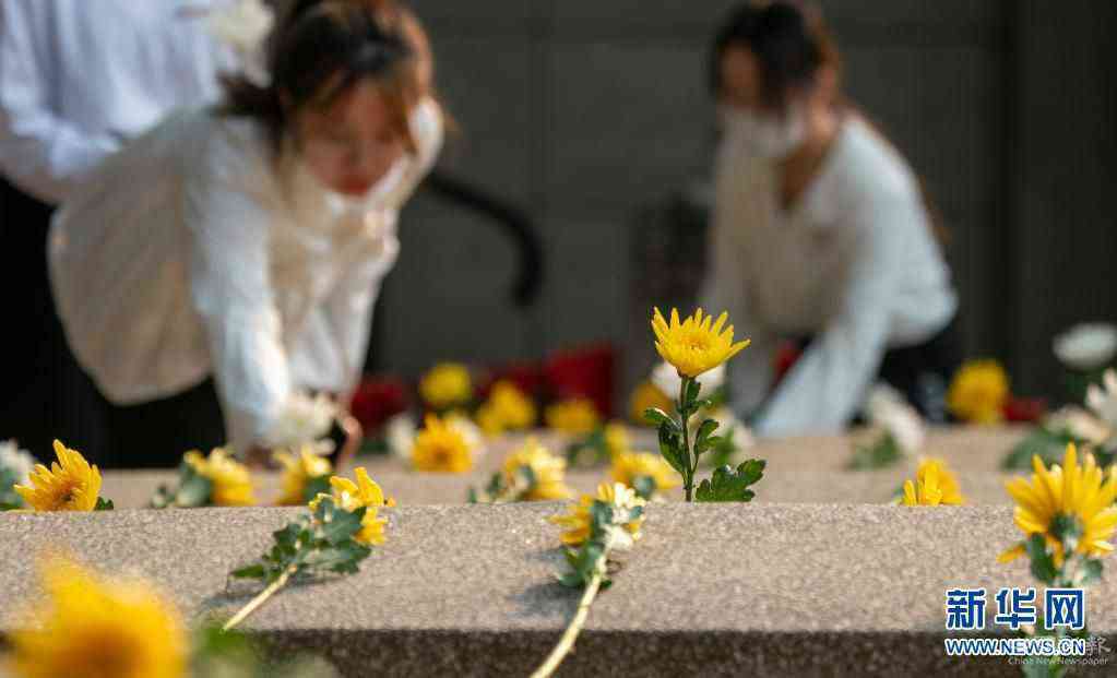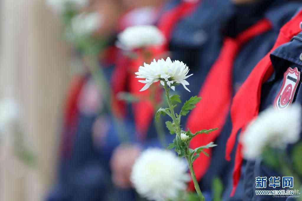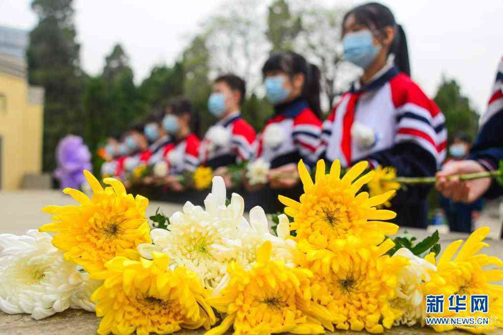 4月1日,在安徽省淮北市相山区烈士陵园,淮北市泉山路学校学生向烈士墓献花。新华社发(万善朝 摄)