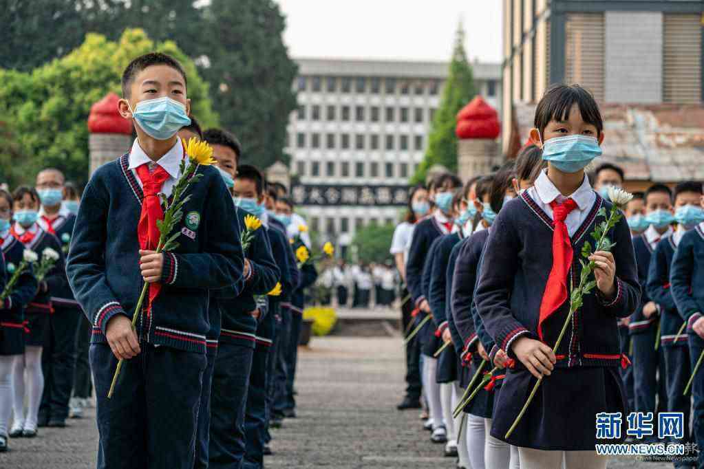 4月1日,安徽省淮北市泉山路学校学生在相山区烈士陵园缅怀革命先烈。新华社发(万善朝 摄)