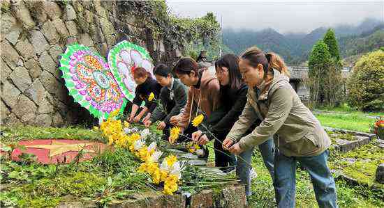 参加清明祭英烈活动人员来到休宁县鹤城乡六股尖烈士陵园,向革命先烈默哀鞠躬,敬献鲜花,深刻缅怀革命英烈的丰功伟绩,寄托对烈士的哀思。在无名烈士碑前,党员重温入党誓词,汲取奋进力量。参加活动人员还清理陵园杂草,擦拭烈士墓碑,保持烈士陵园的干净整洁。活动的开展,旨在充分挖掘和弘扬清明传统节日蕴含的文化内涵和爱国情感,传承红色基因,致敬英烈人物,进一步明理、增信、崇德、力行,感党恩、听党话、跟党走。