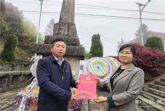 柯建国同志为令狐昌莹颁发《党员政治生日贺卡》
