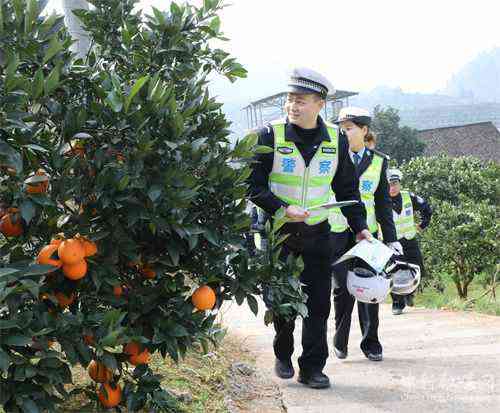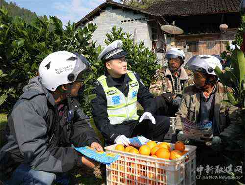 12月2日,在湖南省保靖县比耳镇水坝村的柑橘园,交警在给果农讲解交通安全知识。时下正值柑橘采摘时节,该县交警大队组织民警深入田间地头,为群众讲解农用三轮车、电动车、摩托车等农用车交通安全常识,增强群众出行的交通安全意识。(俞采华 彭 博)