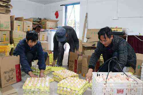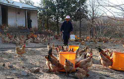 2021年12月22日,在安徽省合肥市庐江县冶父山镇幸福土鸡场里,员工正为土鸡投食玉米粒,捡拾收集土鸡蛋,分拣打包供应市场。